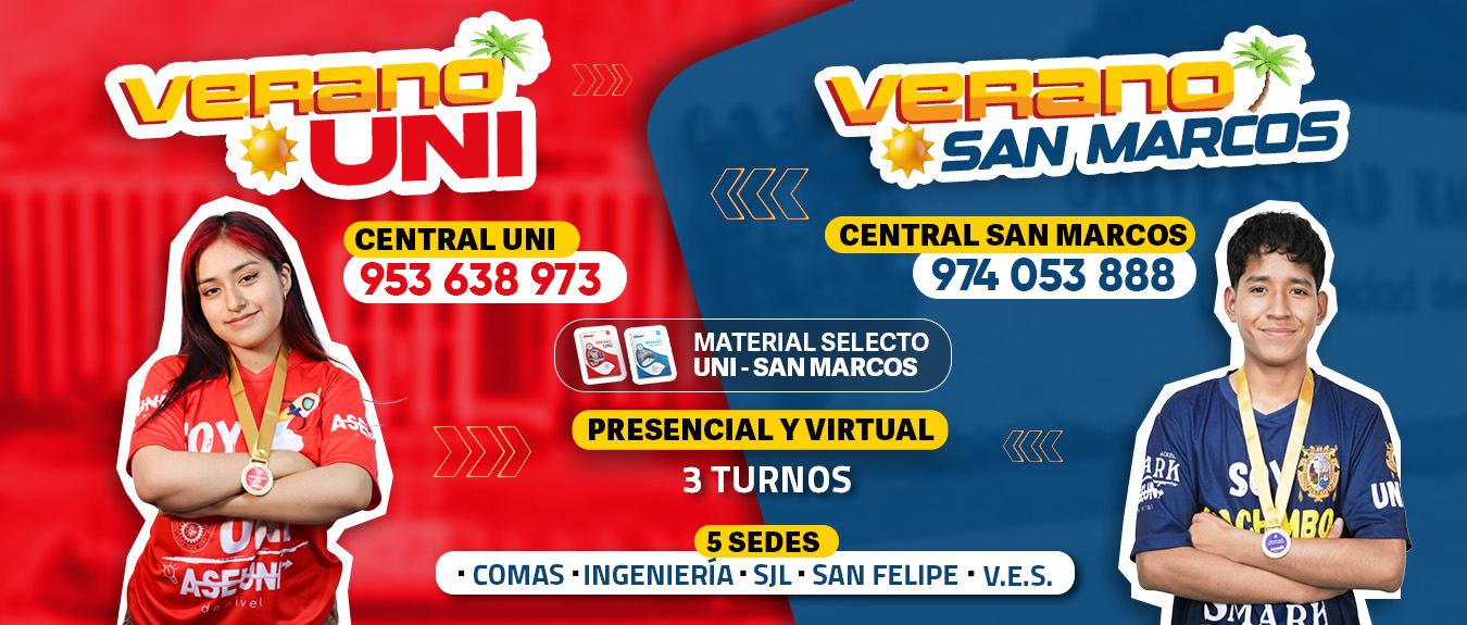 UNI y San Marcos: Anual, Semi Anual, Semestral, Repaso, Escolar, Verano, Élite, IEN y Paralelo Ciencias.